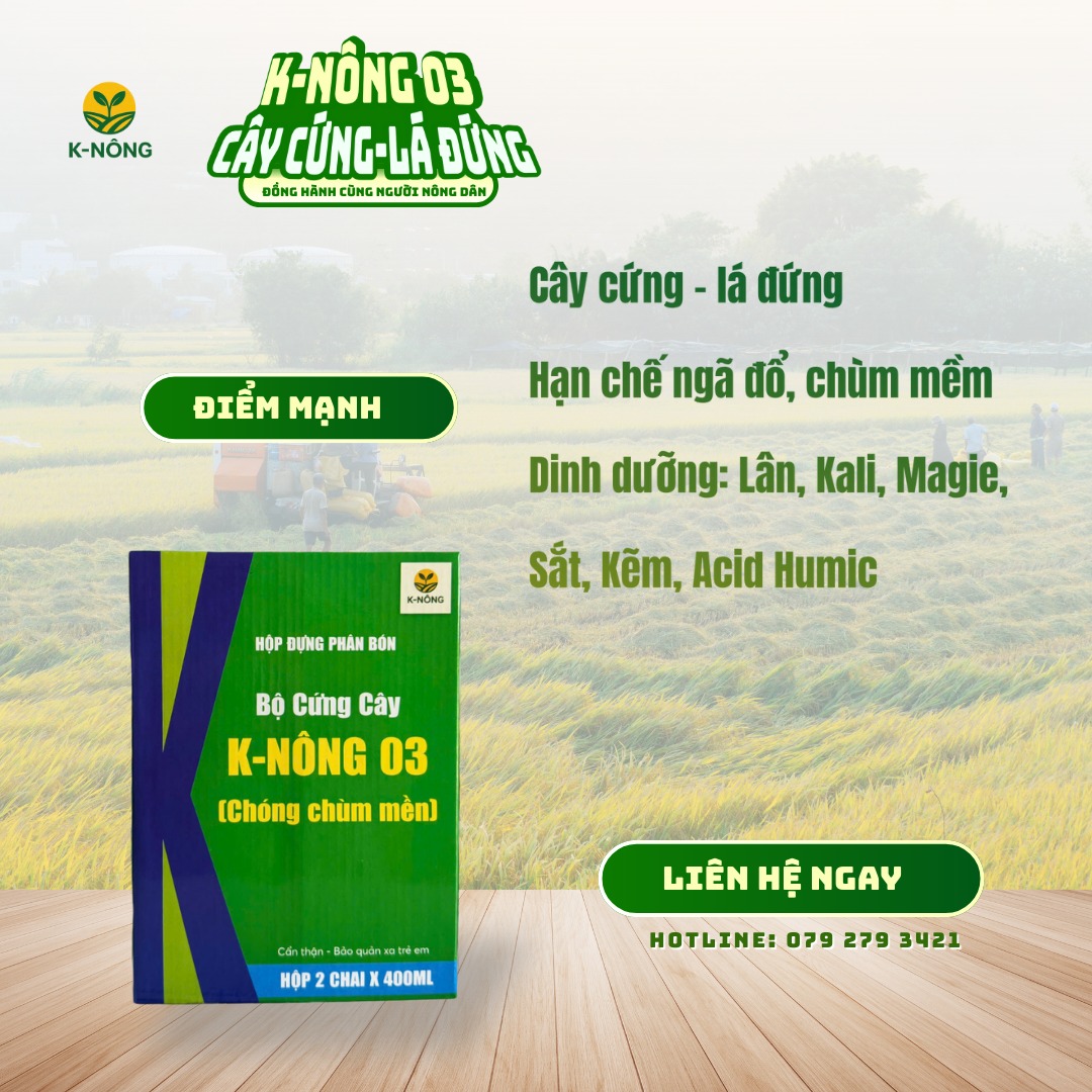 Với lân, kali, magie, sắt, kẽm, acid humic và thành phần đặc biệt “cứng cây” – K-NÔNG 03 chính là bộ giáp thép giúp cây khỏe – mùa bội thu!
