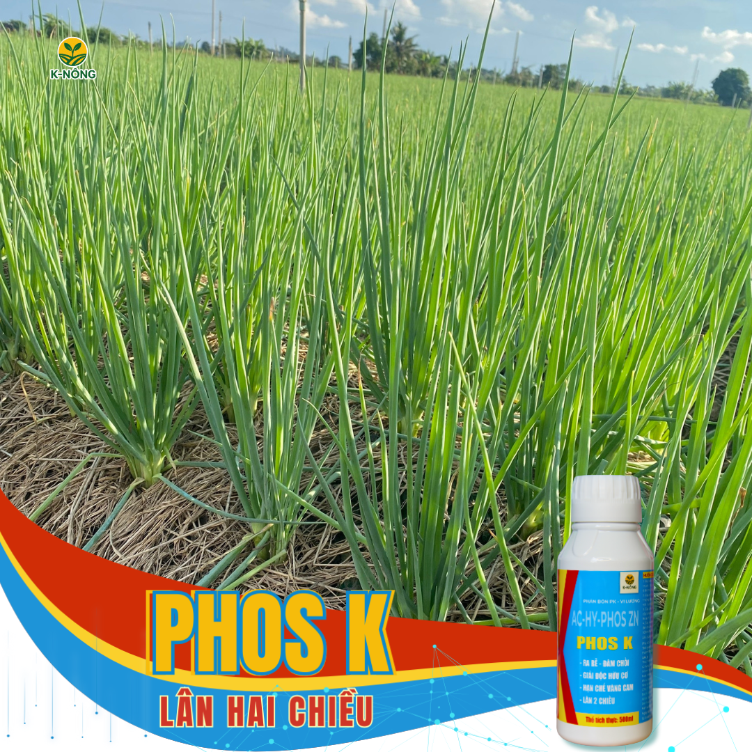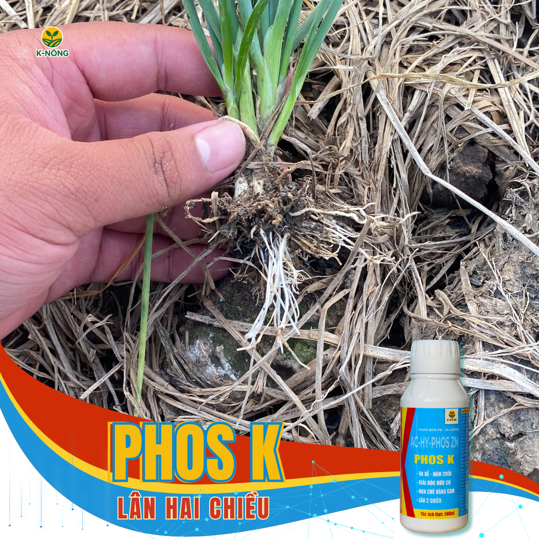 PHOS K – dòng phân bón lá chuyên kích chồi, đẻ nhánh – nở bụi hiệu quả cho lúa, rau màu và hành lá.